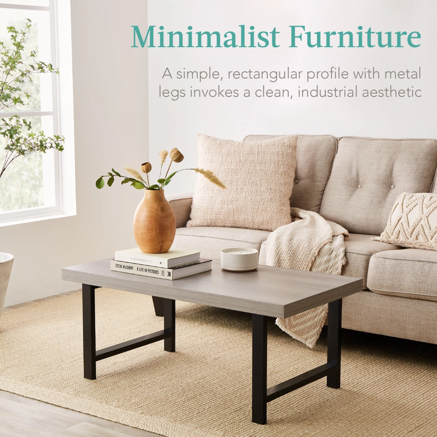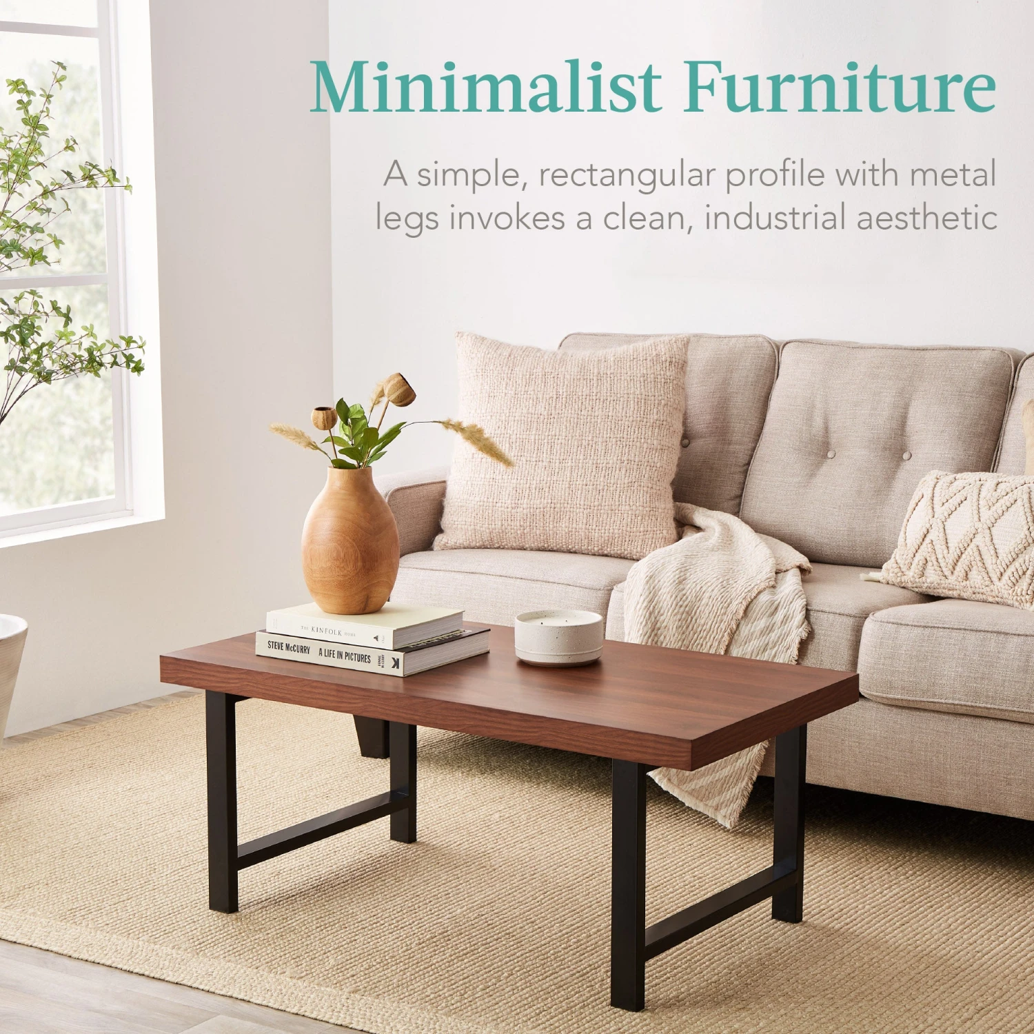Best Choice Products Modern Butcher Block Top Rectangular Coffee Table W/ Metal Legs – 44in