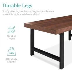 DURABLE LEGS: 2-inch-thick steel legs and matching support beams can hold up to 90 pounds and compliment a clean industrial look