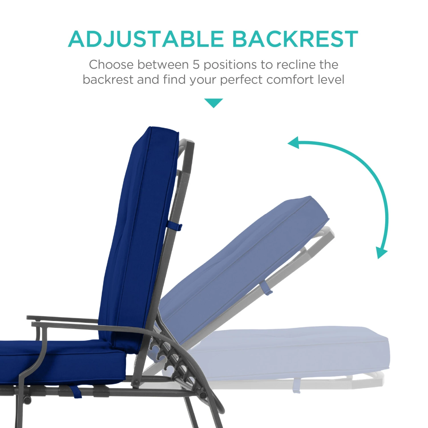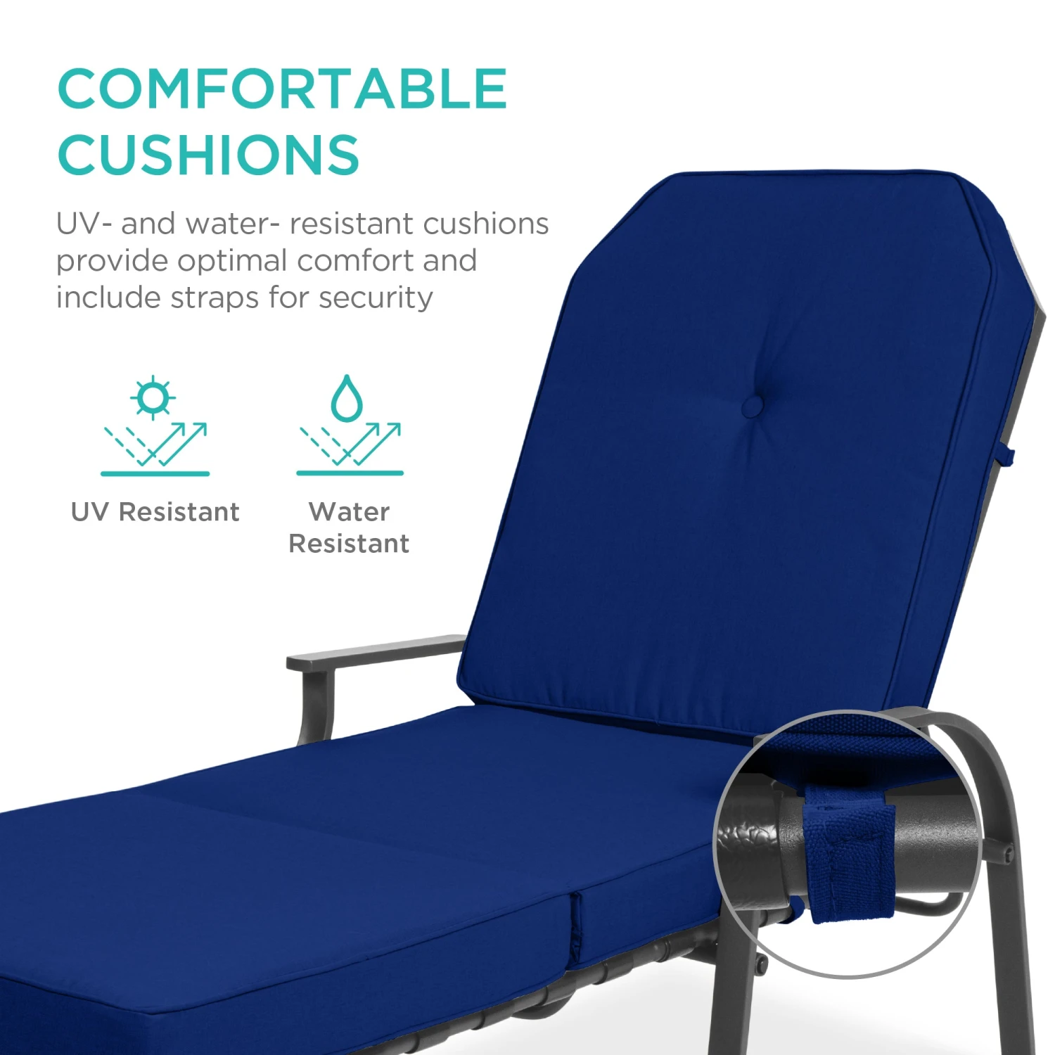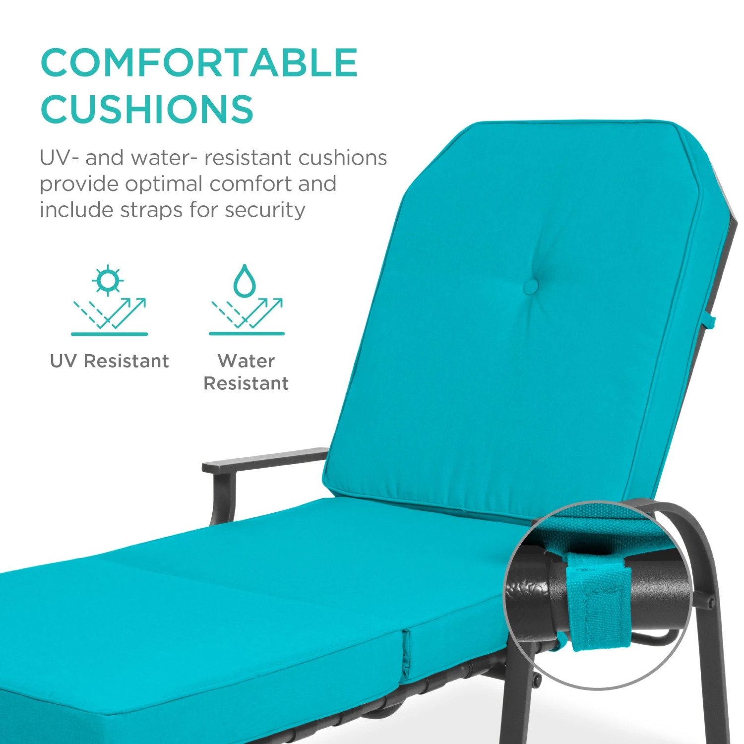 Best Choice Products Outdoor Chaise Lounge Recliner Chair Furniture W/ 2 Cushions