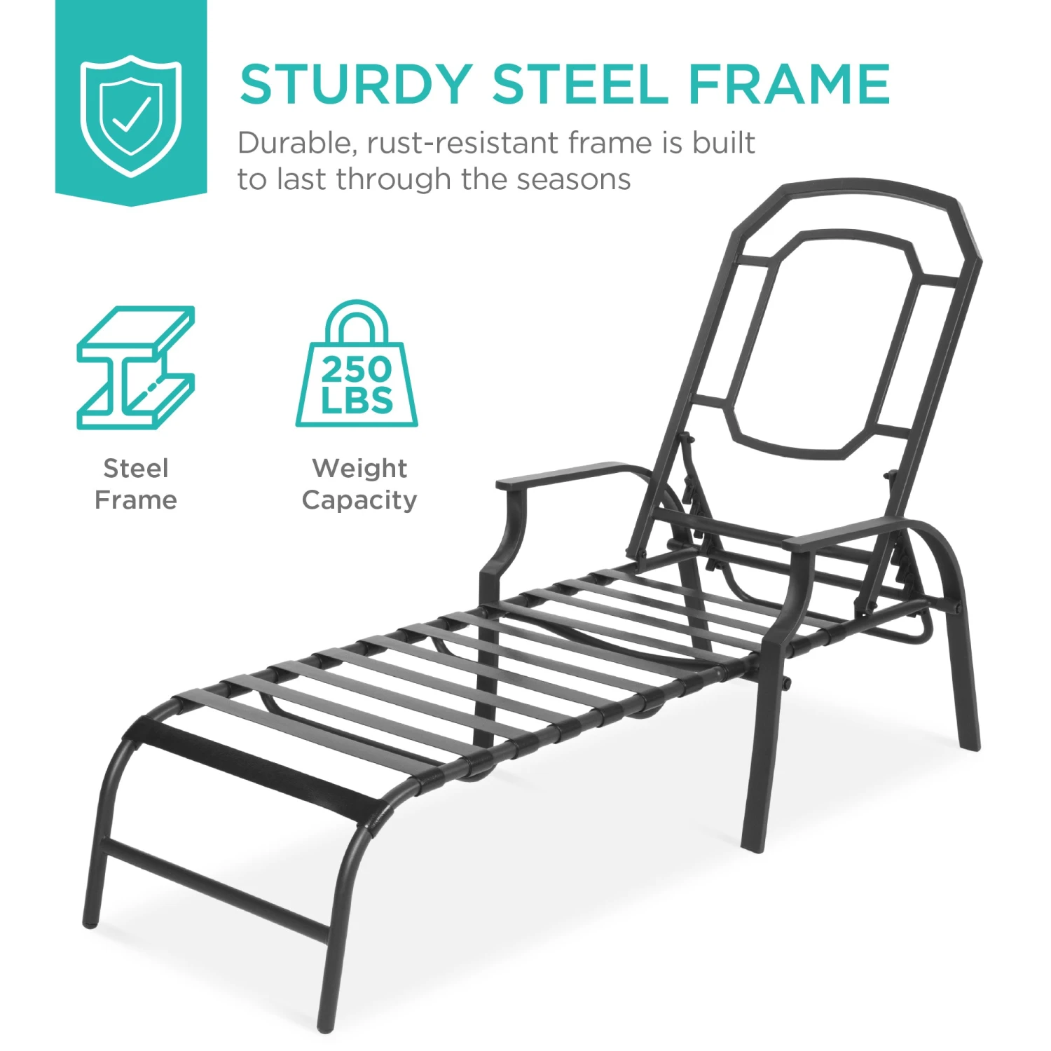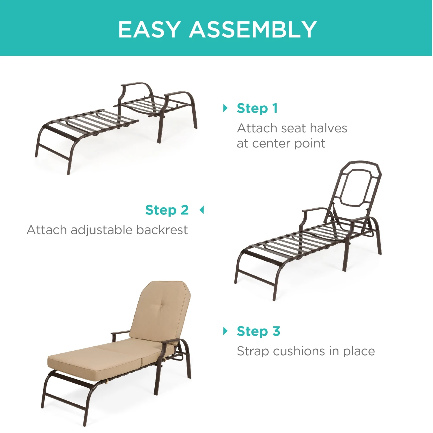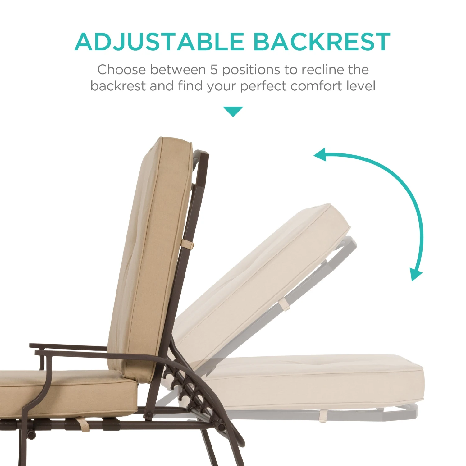 Best Choice Products Outdoor Chaise Lounge Recliner Chair Furniture W/ 2 Cushions