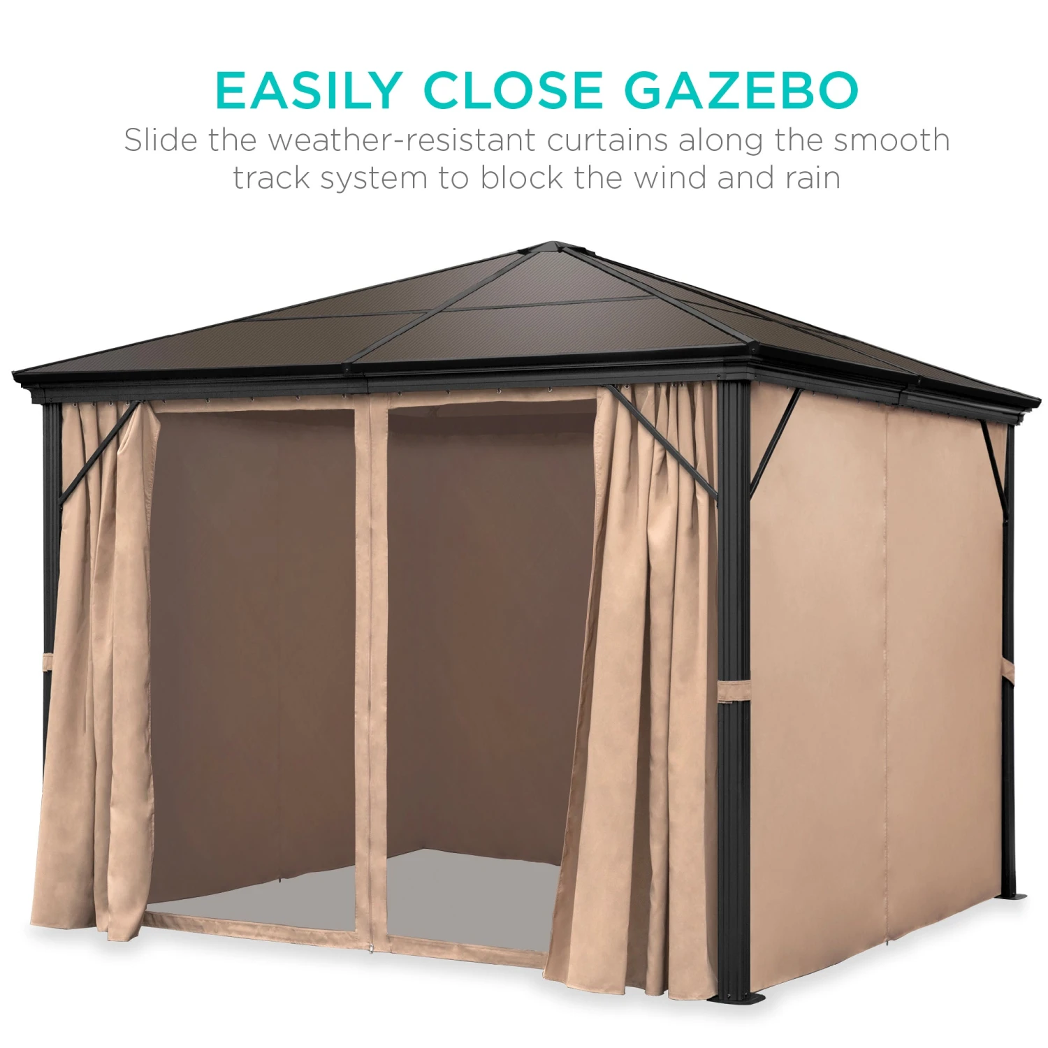 Best Choice Products Outdoor Hardtop Gazebo W/ Aluminum Frame, Side Curtains, Netting – 10x10ft
