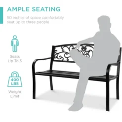 Enjoy sunny afternoons from your yard or patio with an elegant bench that complements any outdoor space. Floral accents ornate your bench for a charming, old-fashioned touch. This clever modern design is lightweight enough to easily move as needed, yet sturdy enough to hold 3 people, up to 400 lbs.