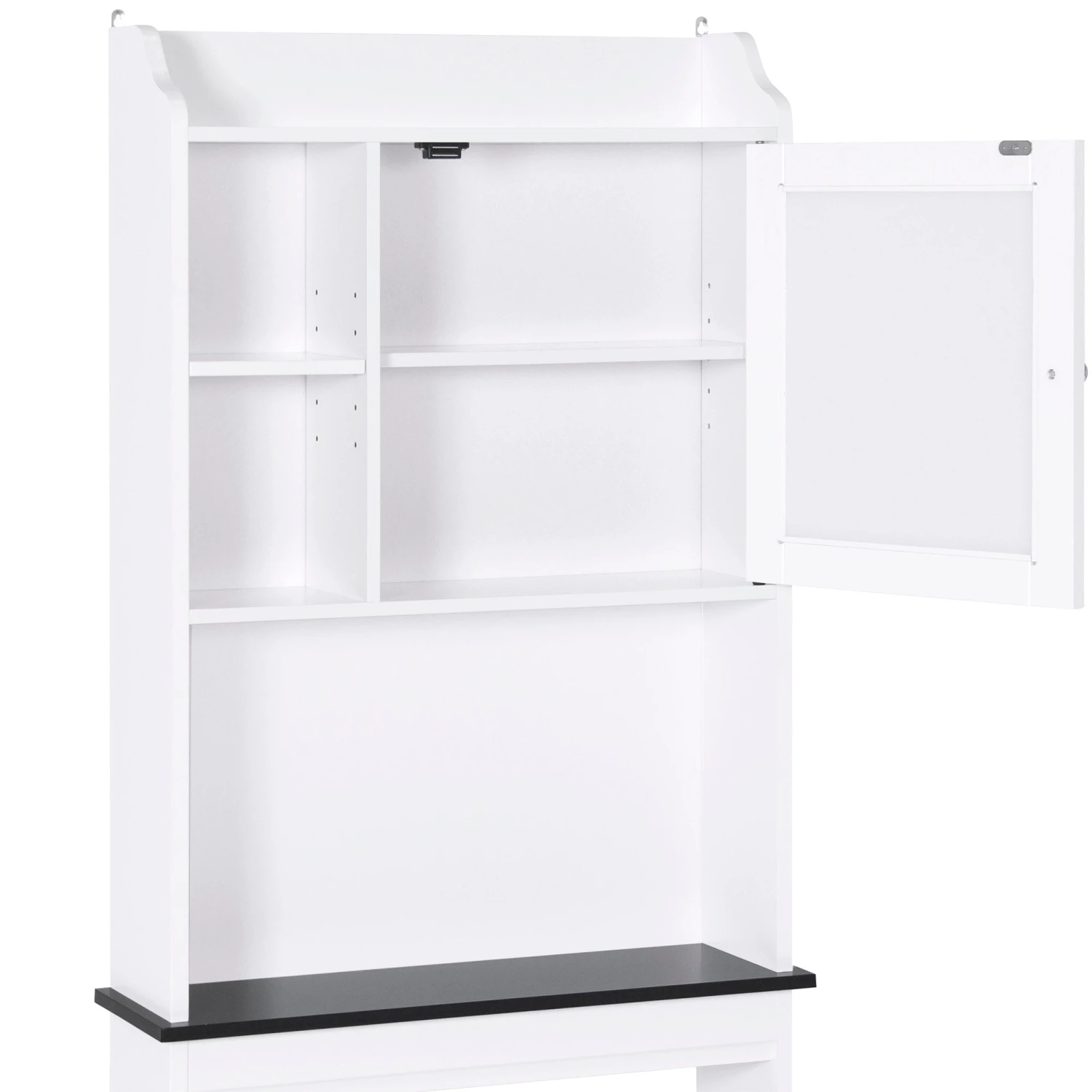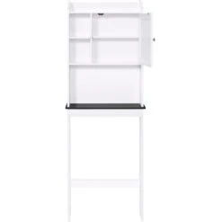 PRACTICAL DESIGN: Bathroom space-saver linen cabinet conveniently fits over your toilet and is designed with plenty of shelving for organization and storage