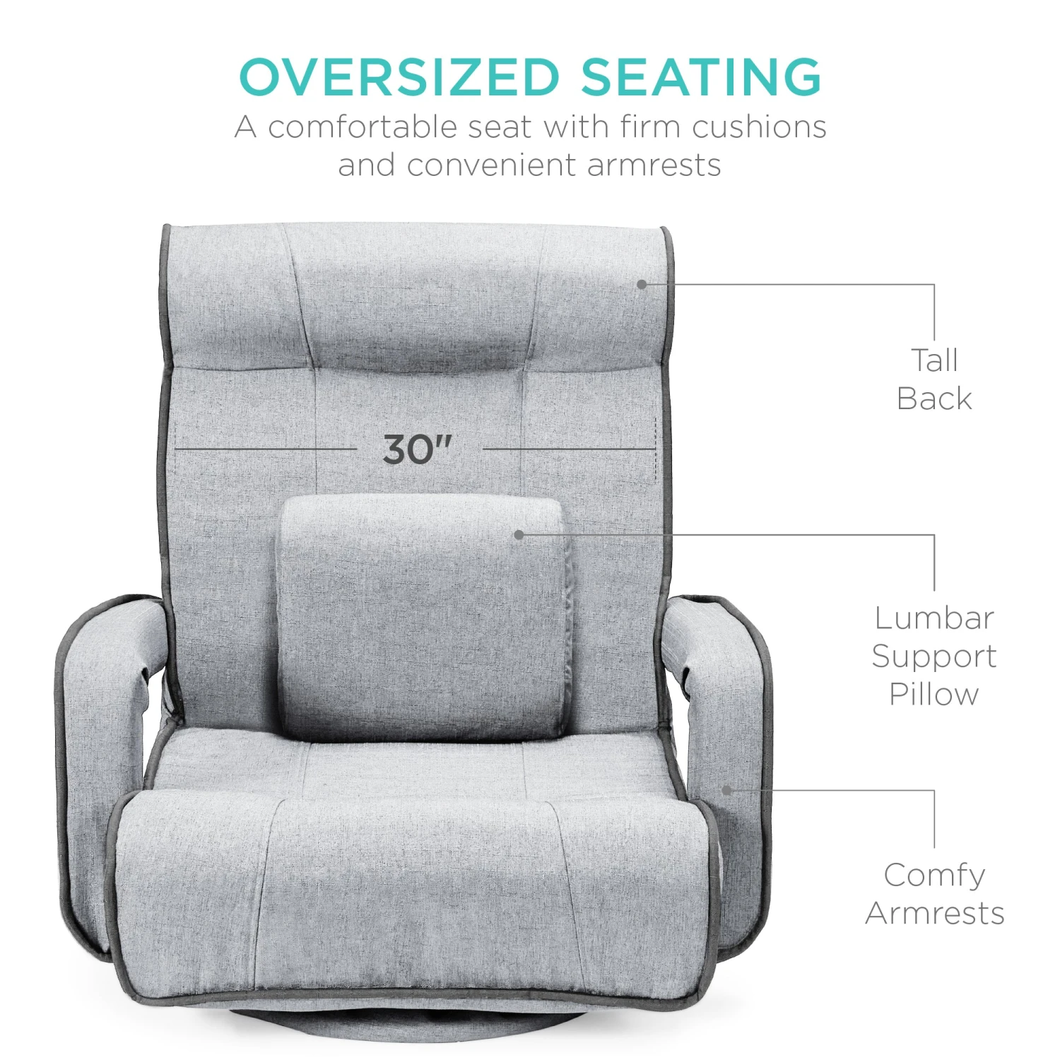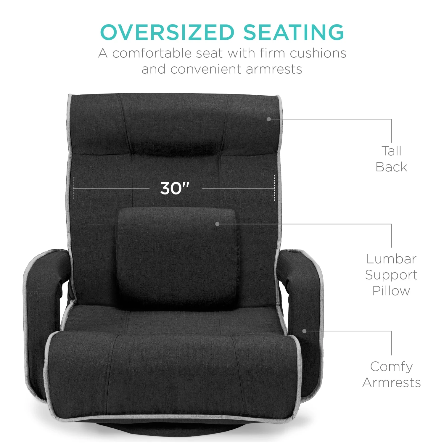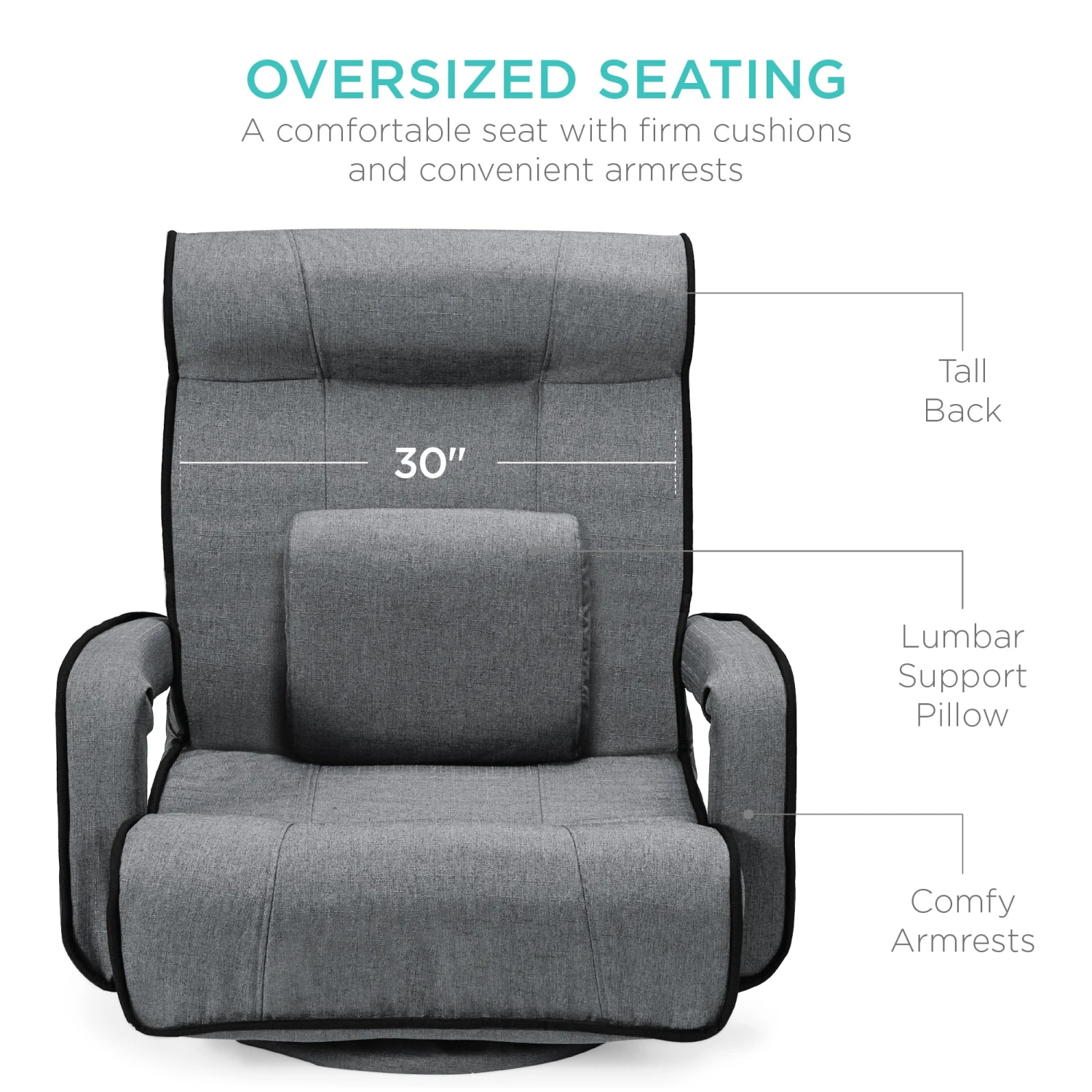 OVERSIZED SEATING: The oversized seat with a high, extra-wide (over 2ft) backrest makes this chair suitable for all; an included lumbar pillow enhances comfort