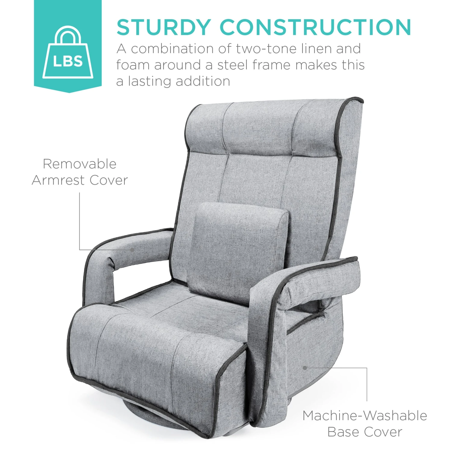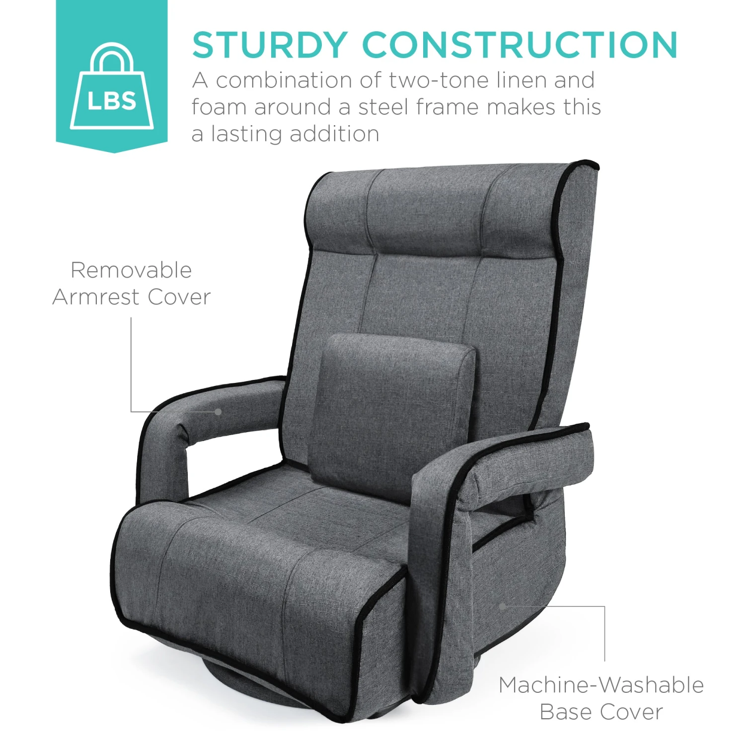 STURDY DESIGN: Soft, removable linen cover and armrests wrap around plush yet firm foam and a durable steel frame; machine-washable base protects your floors from scratches