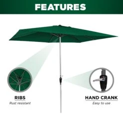 EASY OPEN/CLOSE CRANK: A simple hand crank helps to make opening and closing the umbrella a breeze