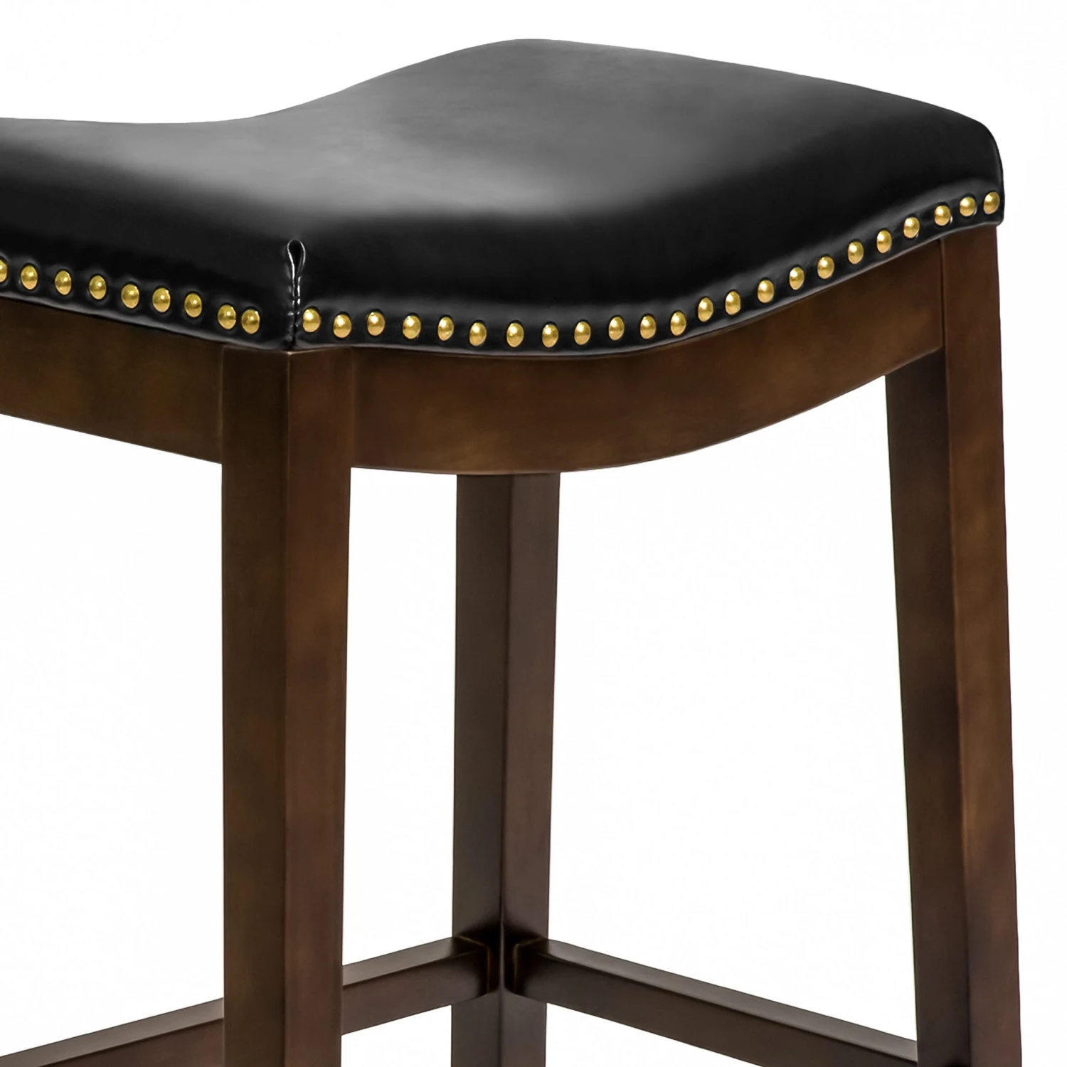Gorgeous details-warm, espresso stained legs and brass studded accents that curve along the seat