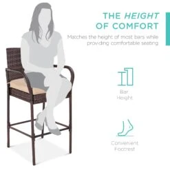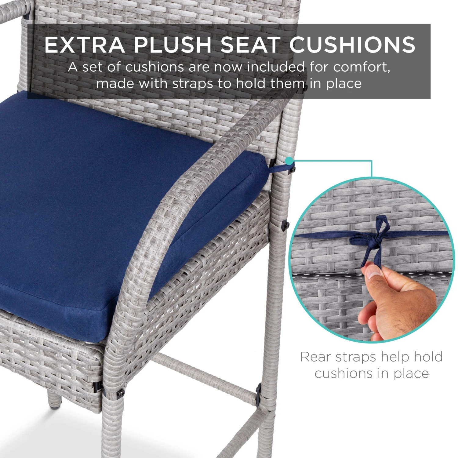 Best Choice Products Set Of 2 Indoor Outdoor Wicker Bar Stools W/ Cushion, Footrests, Armrests