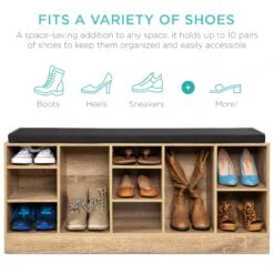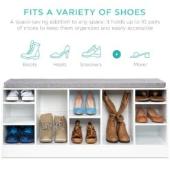 Best Choice Products Shoe Storage Rack Bench W/ Padded Seat, 10 Cubbies – 46in