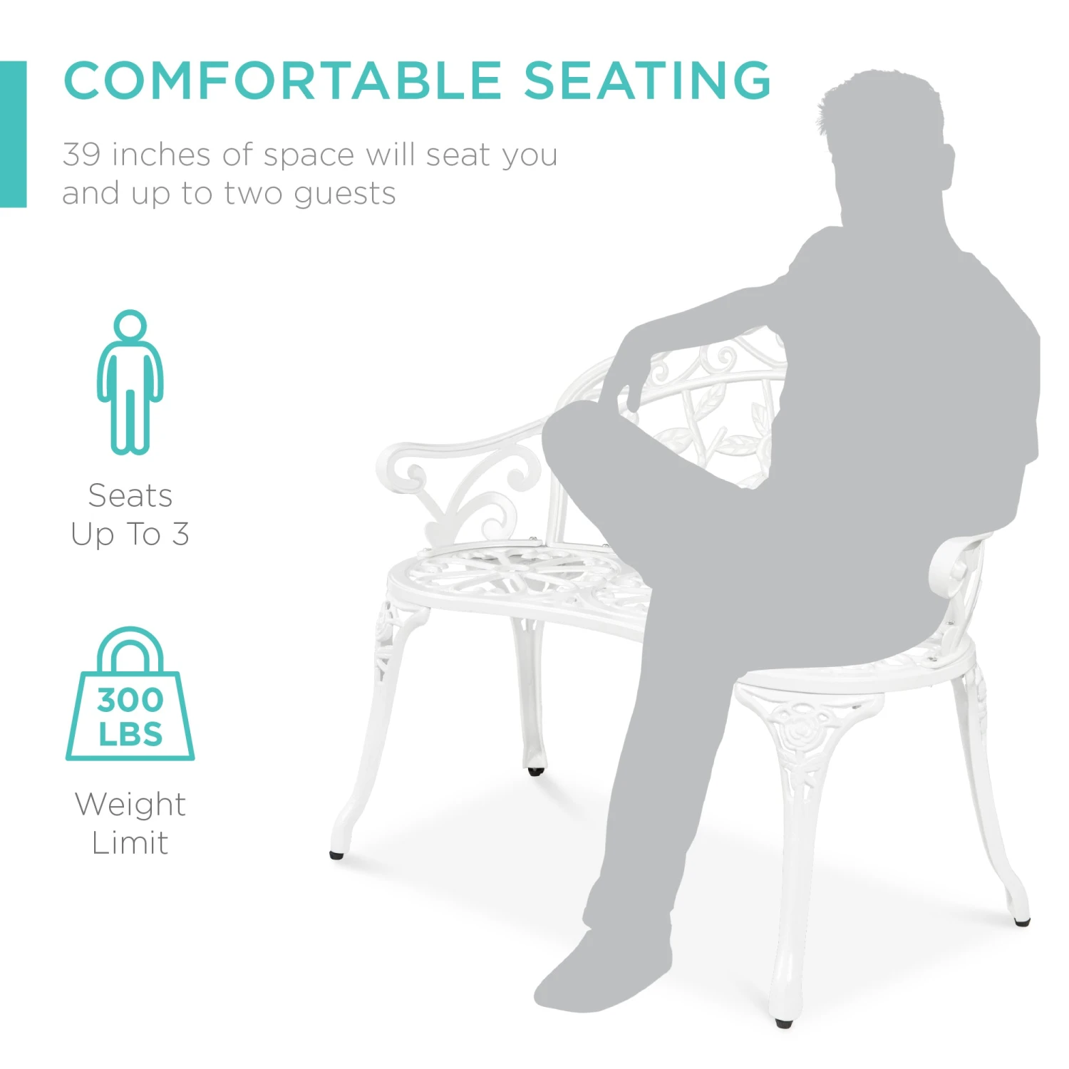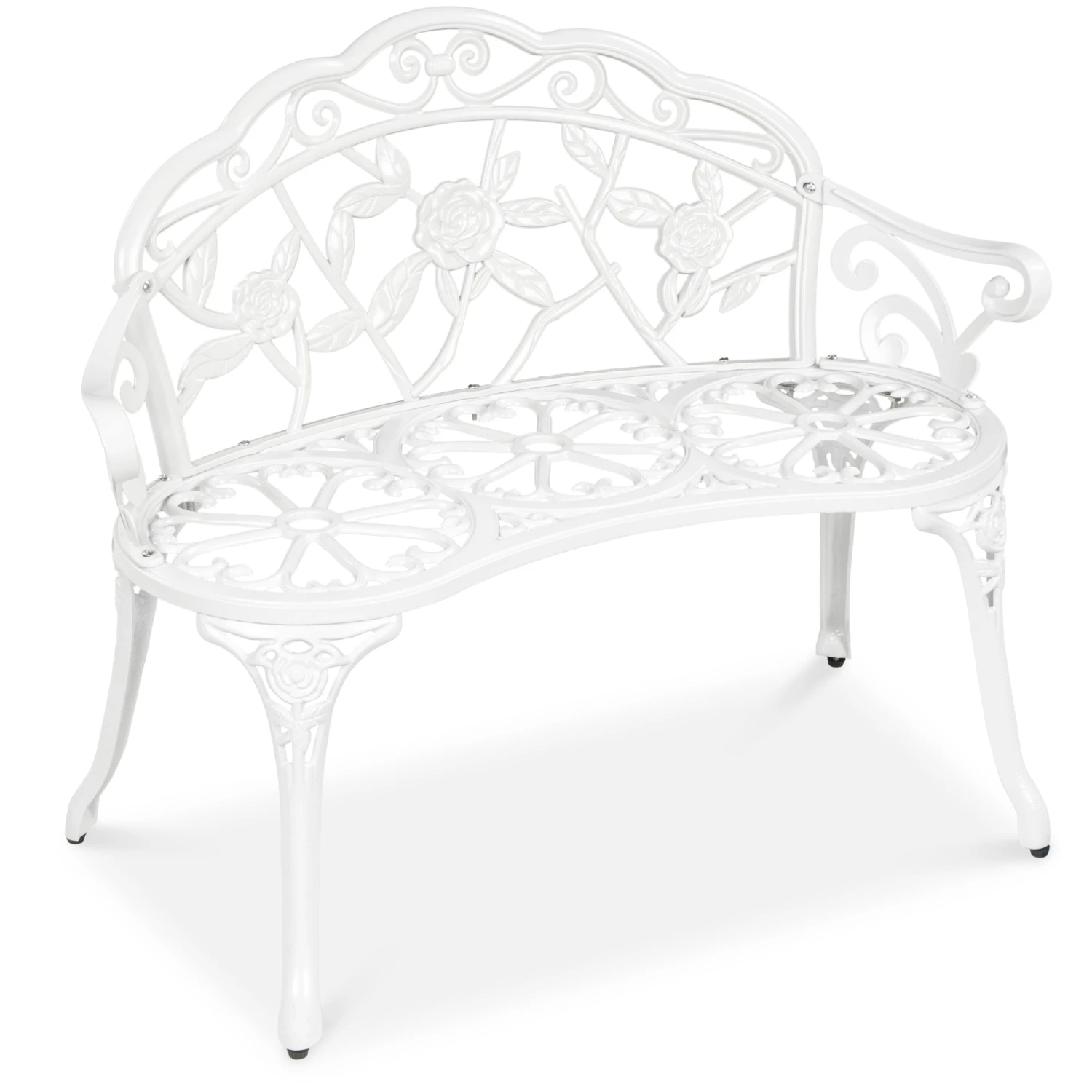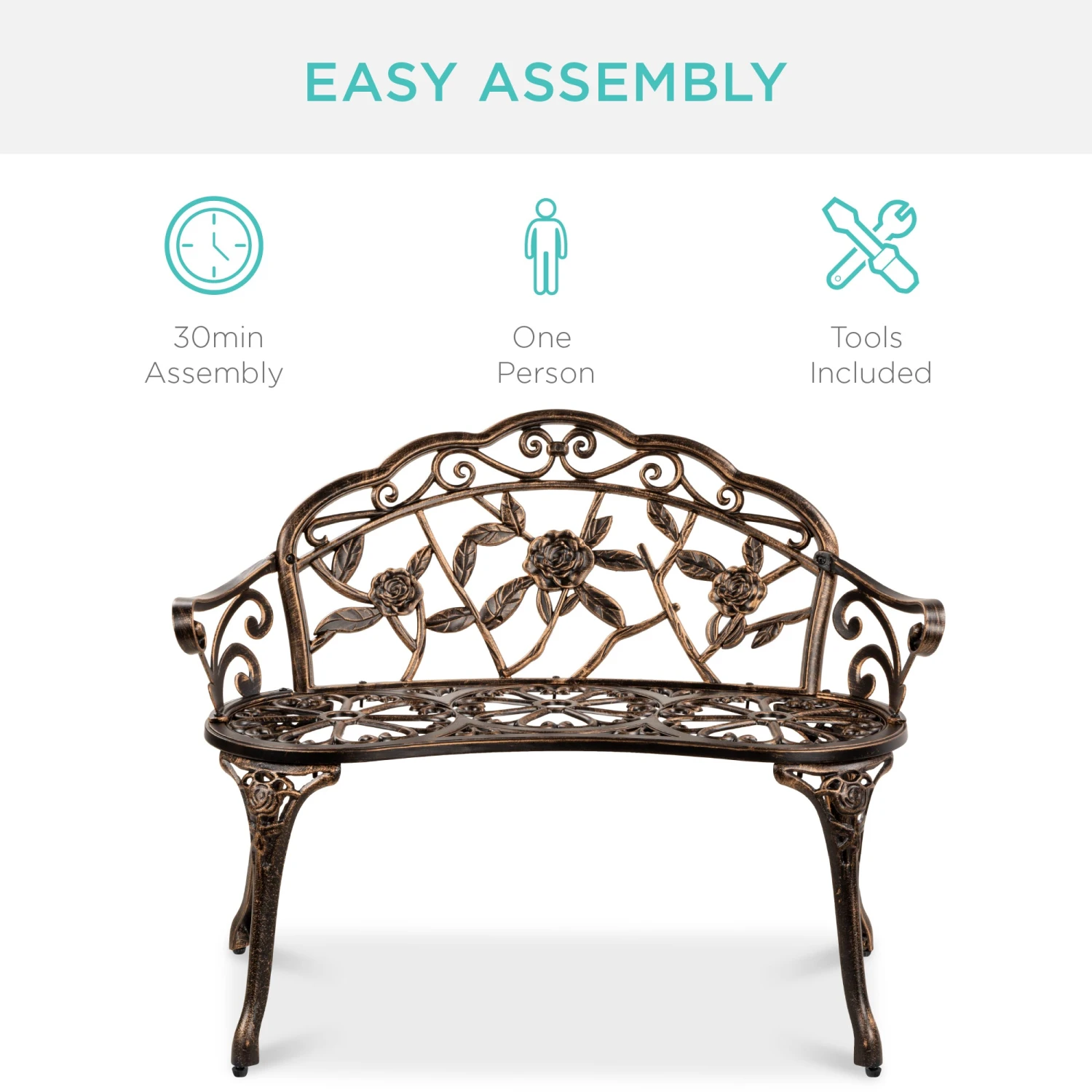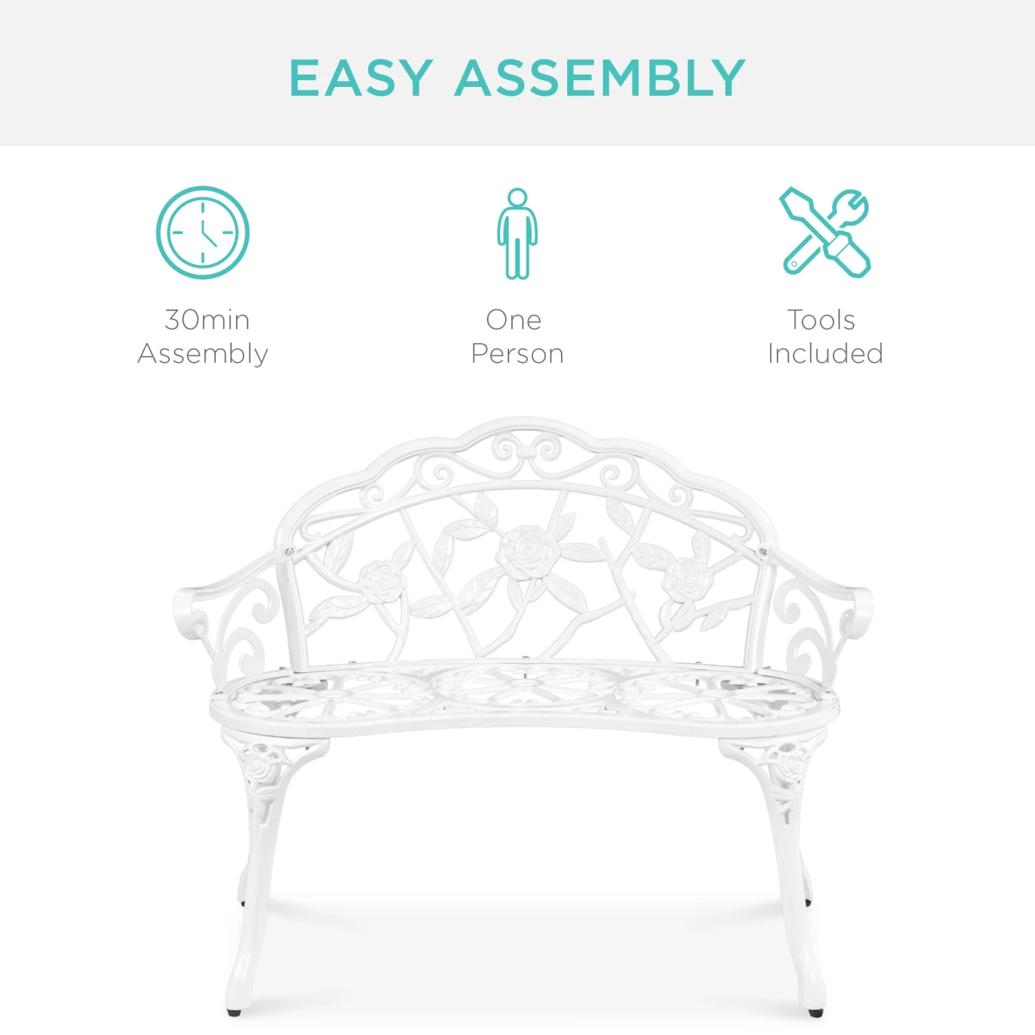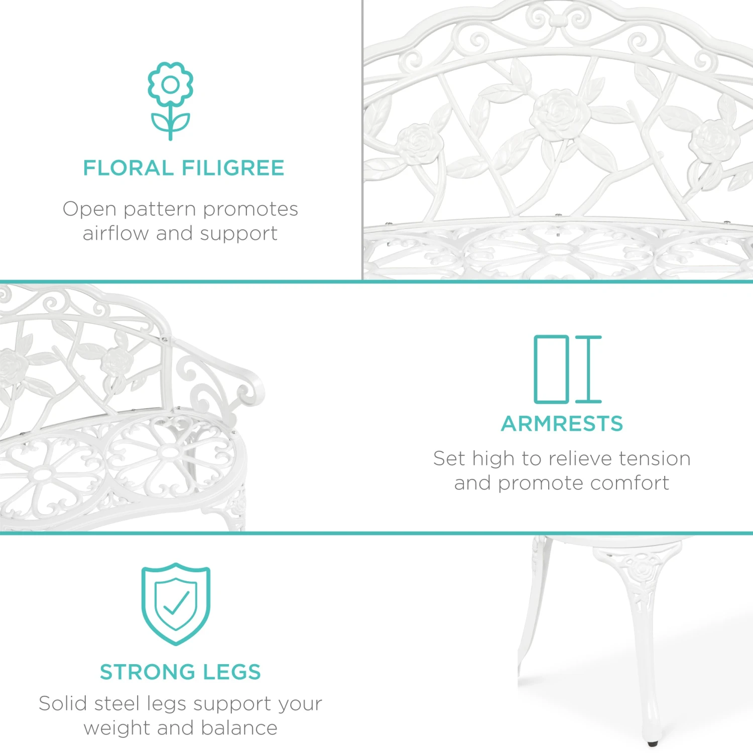 Best Choice Products Steel Garden Bench Outdoor Patio Furniture W/ Floral Rose Accent- 39in