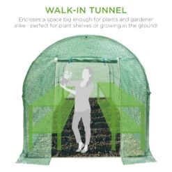 WALK-IN TUNNEL: The arched tunnel shape encloses a large space to conveniently grow a variety of plants, and leaves plenty of room for you to tend them