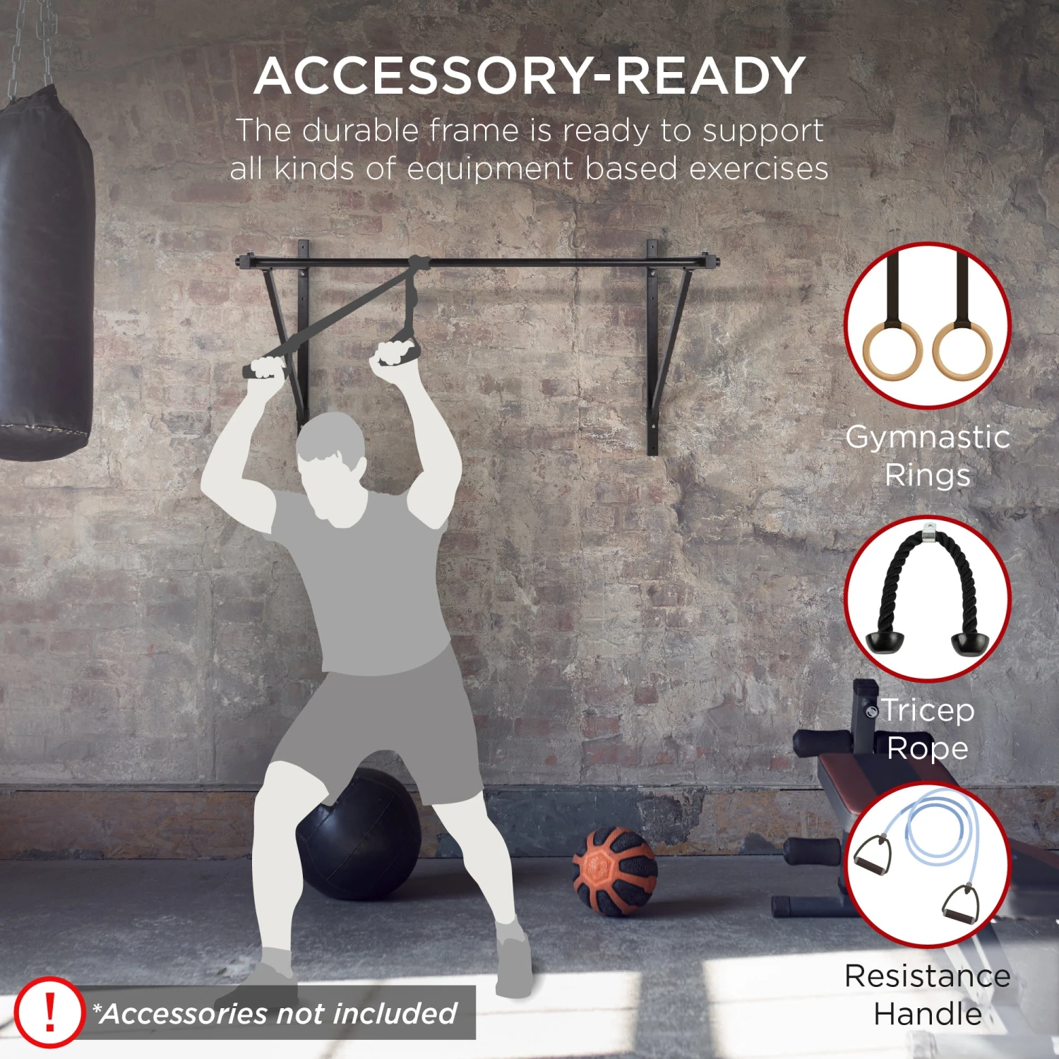 ACCESSORY-READY: The high weight capacity combined with durable materials allow you to broaden your workouts with accessories like gymnastic rings, tricep ropes, and more (accessories not included)