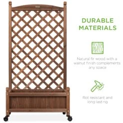 Best Choice Products Wood Planter Box & Lattice Trellis W/ Drainage, Optional Wheels – 60in